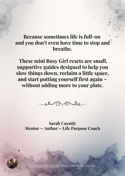 These mini Busy Girl resets are gentle, self-guided tools designed for midlife women who want to feel calmer, clearer, and more themselves ~ without adding more to do.